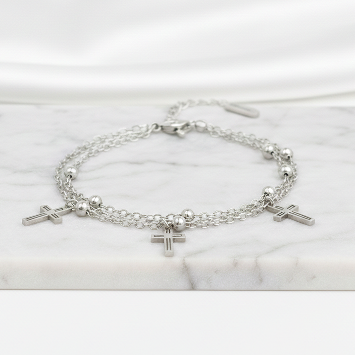 Pulseira bolinhas Crus Em Aço Inoxidável